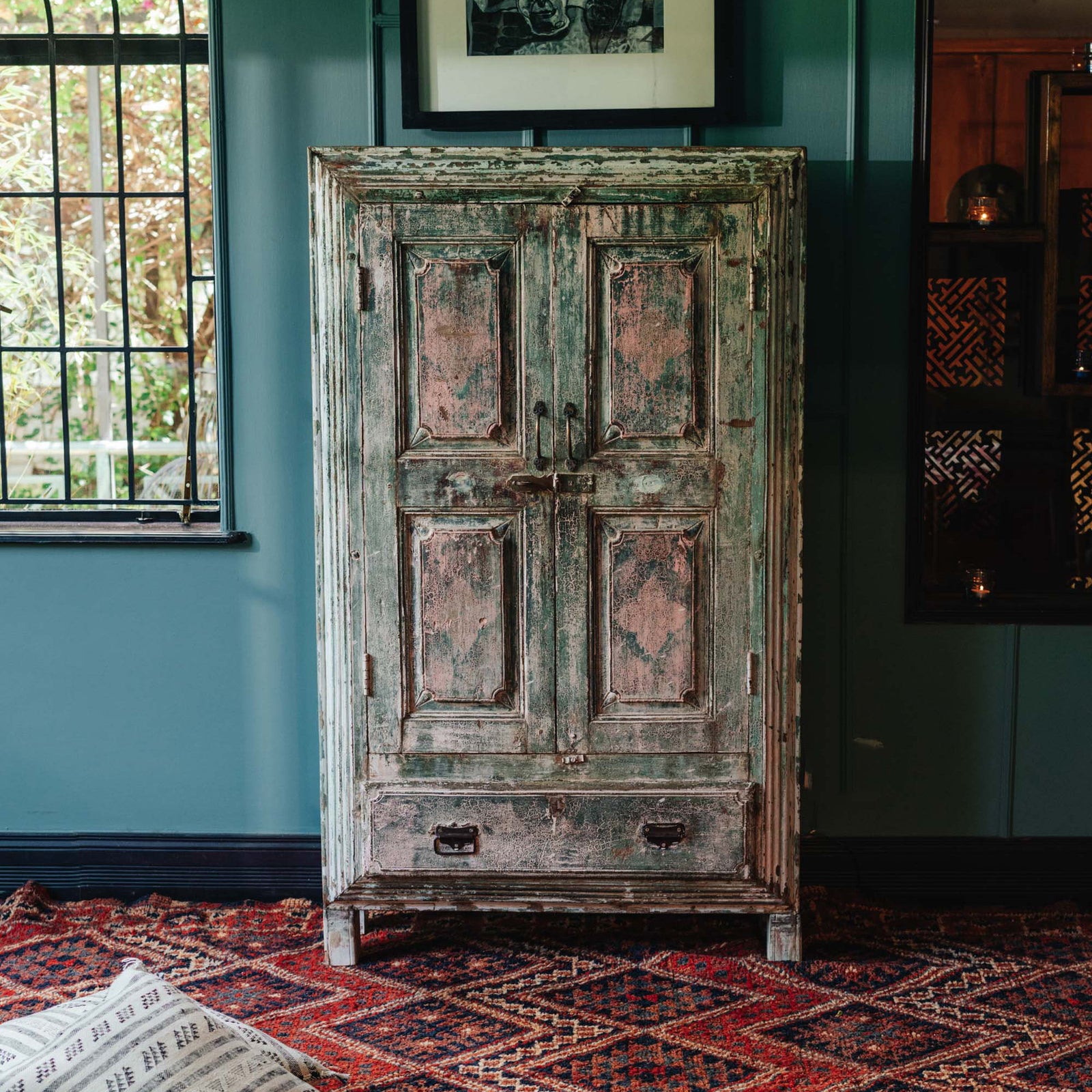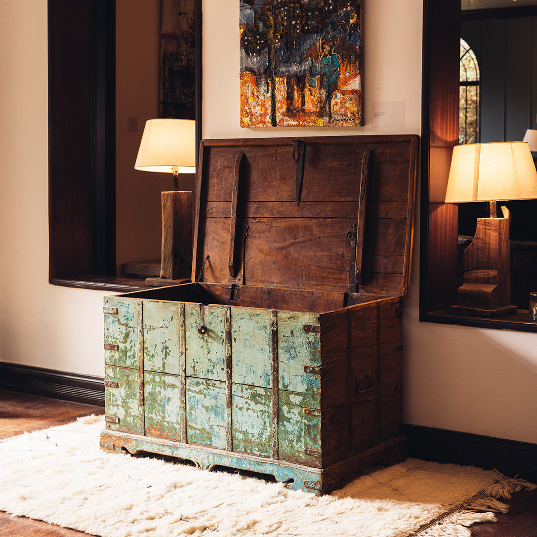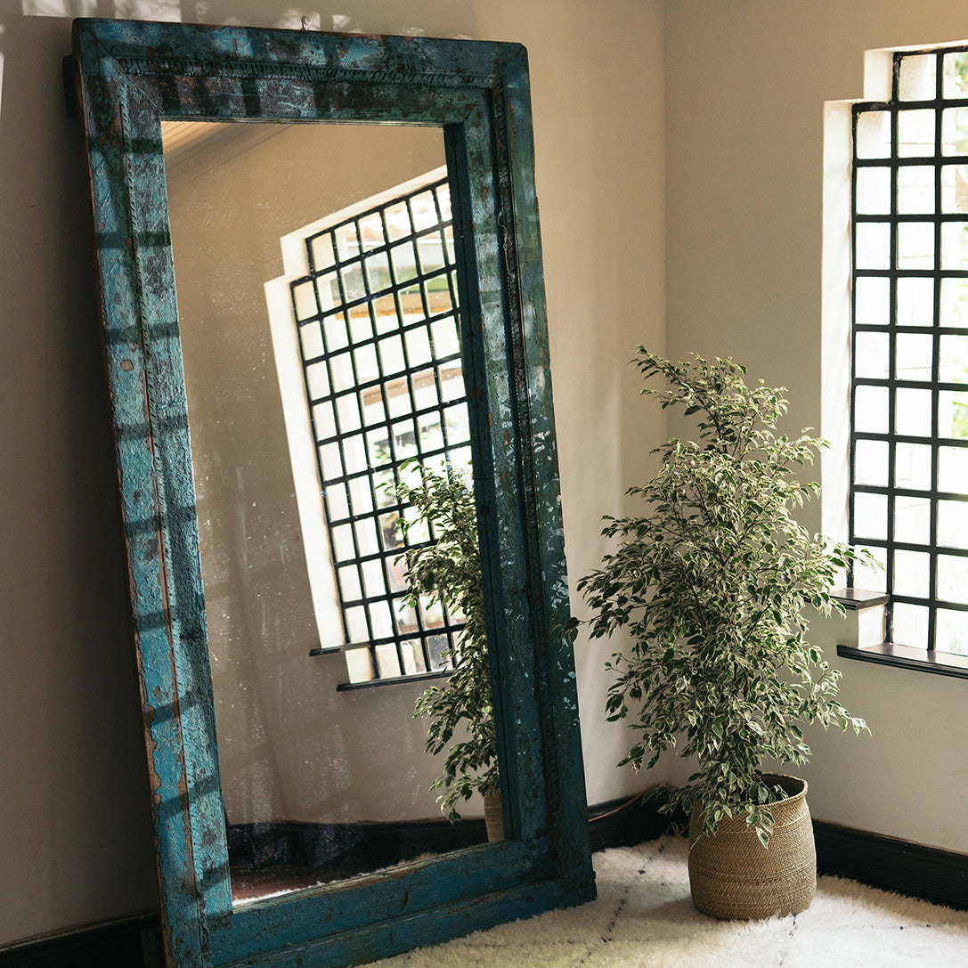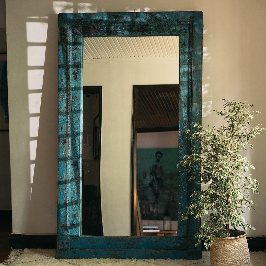 From old Almirah cabinets reflecting their long stories in layers of cracked paint to fabulous mirrors created with door and window frames that once graced ancient havelis.