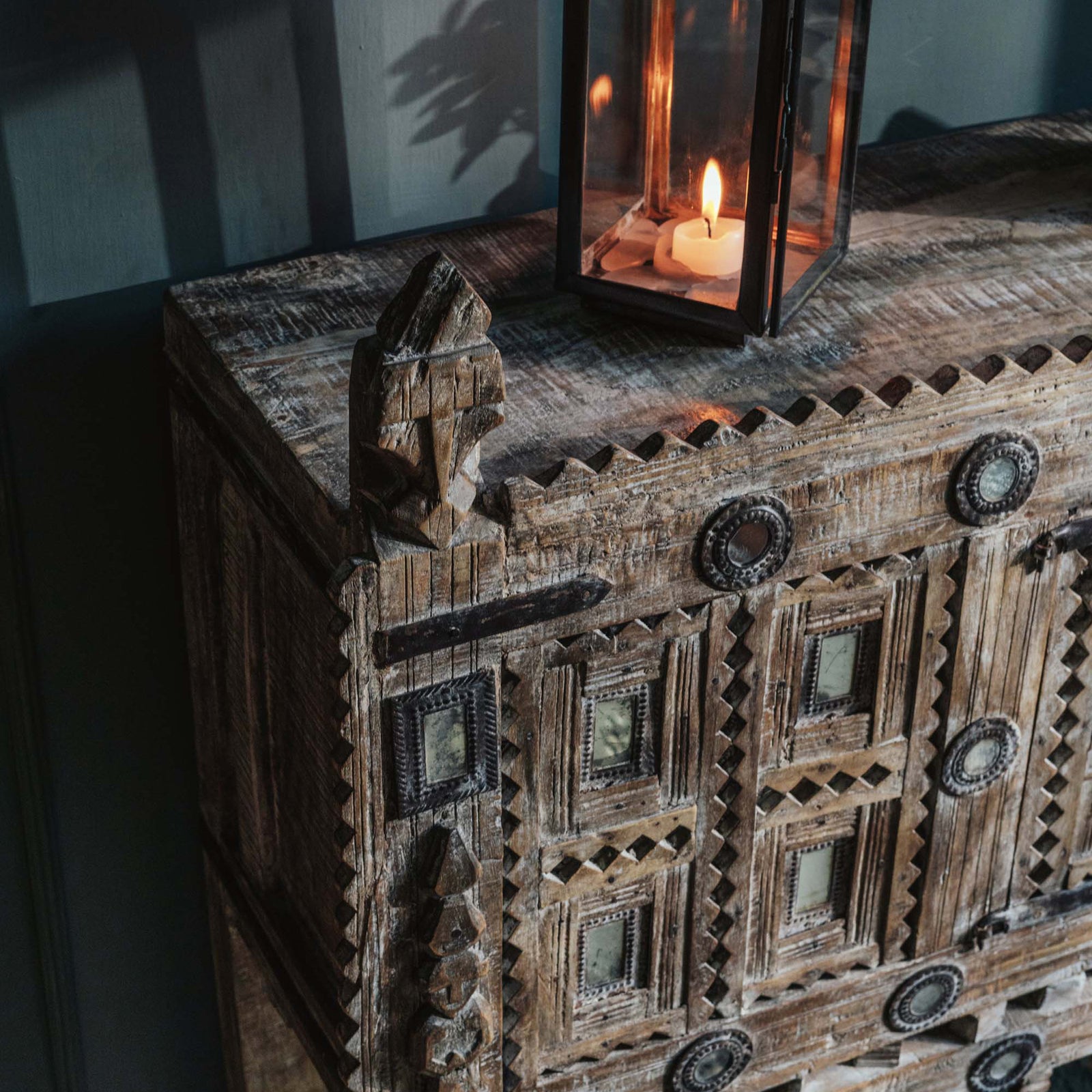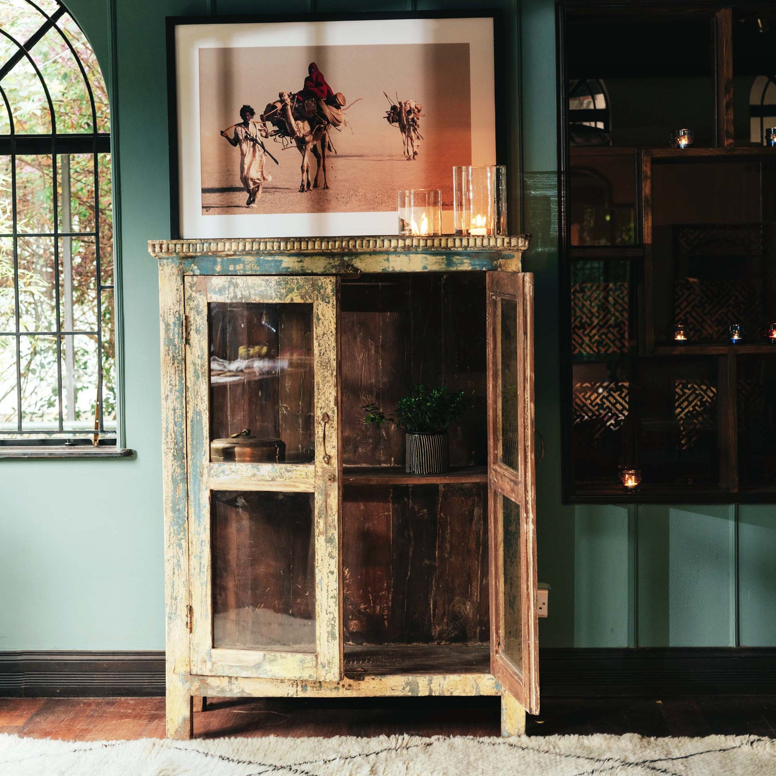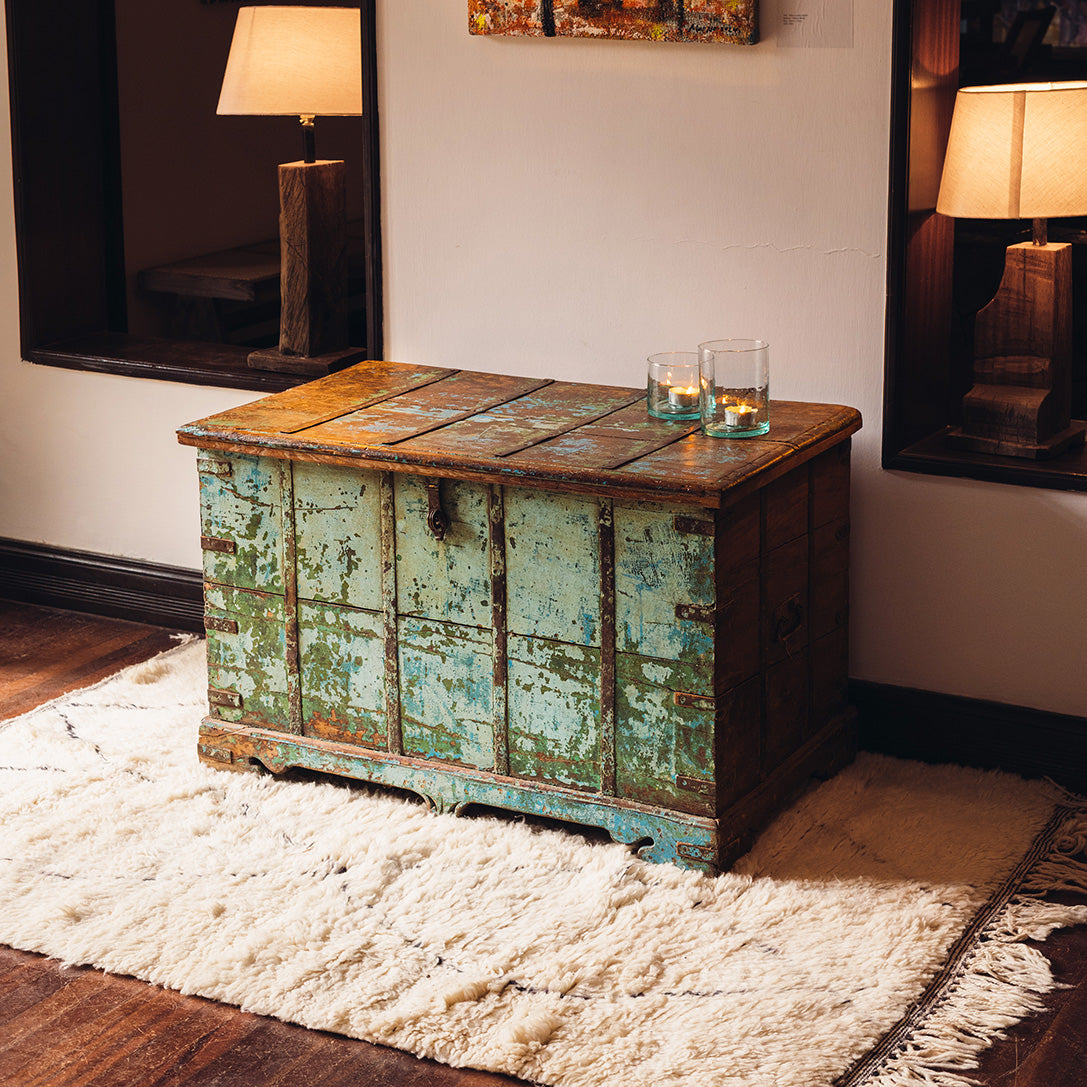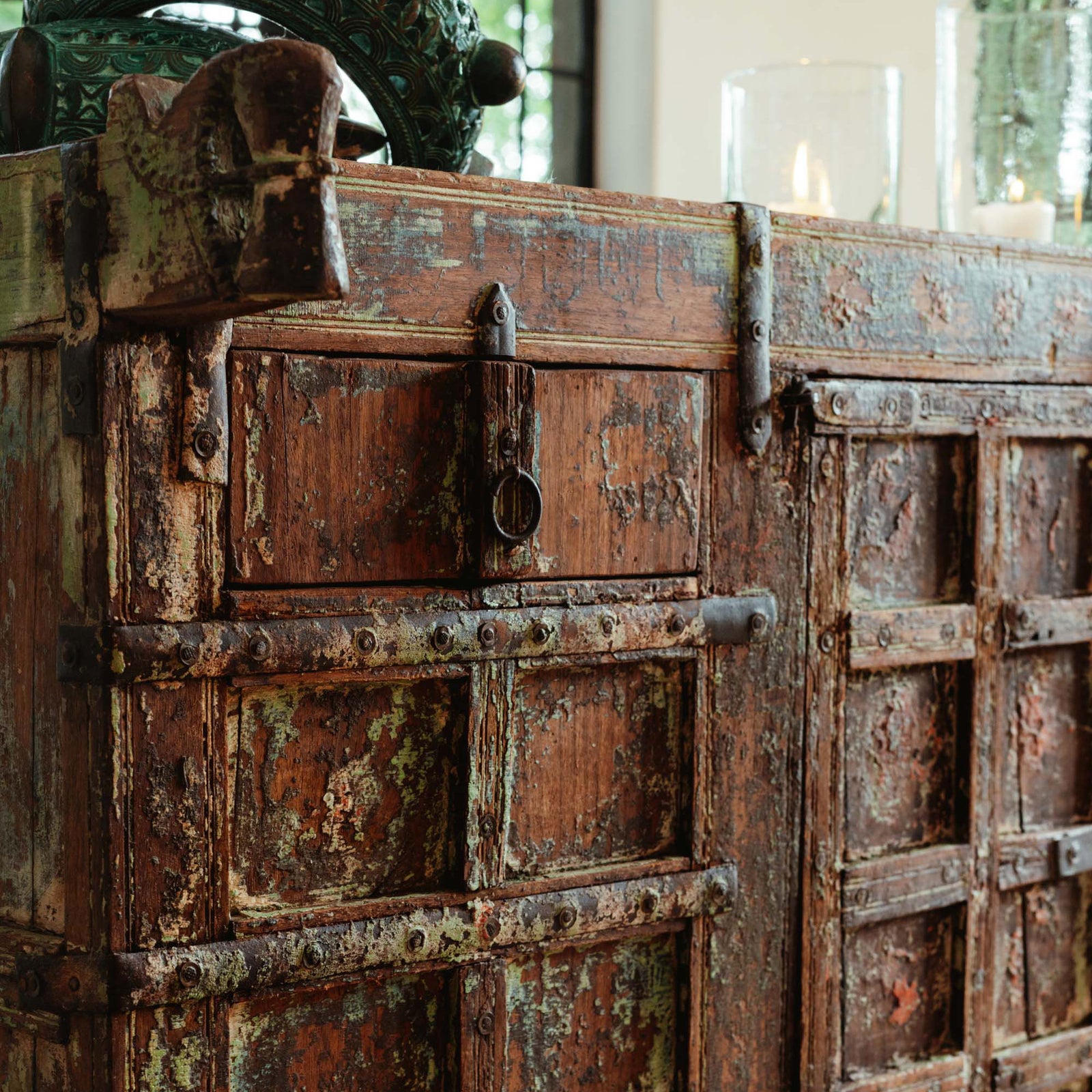 From old Almirah cabinets reflecting their long stories in layers of cracked paint to fabulous mirrors created with door and window frames that once graced ancient havelis.