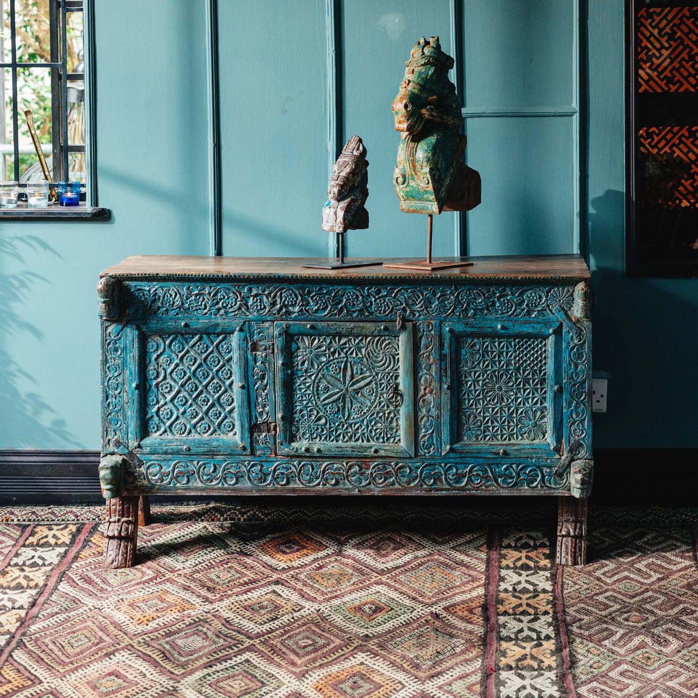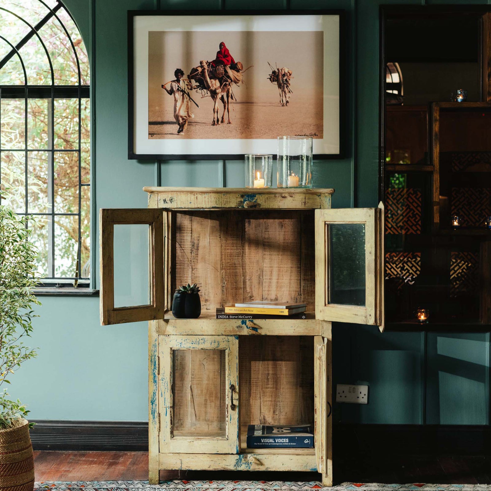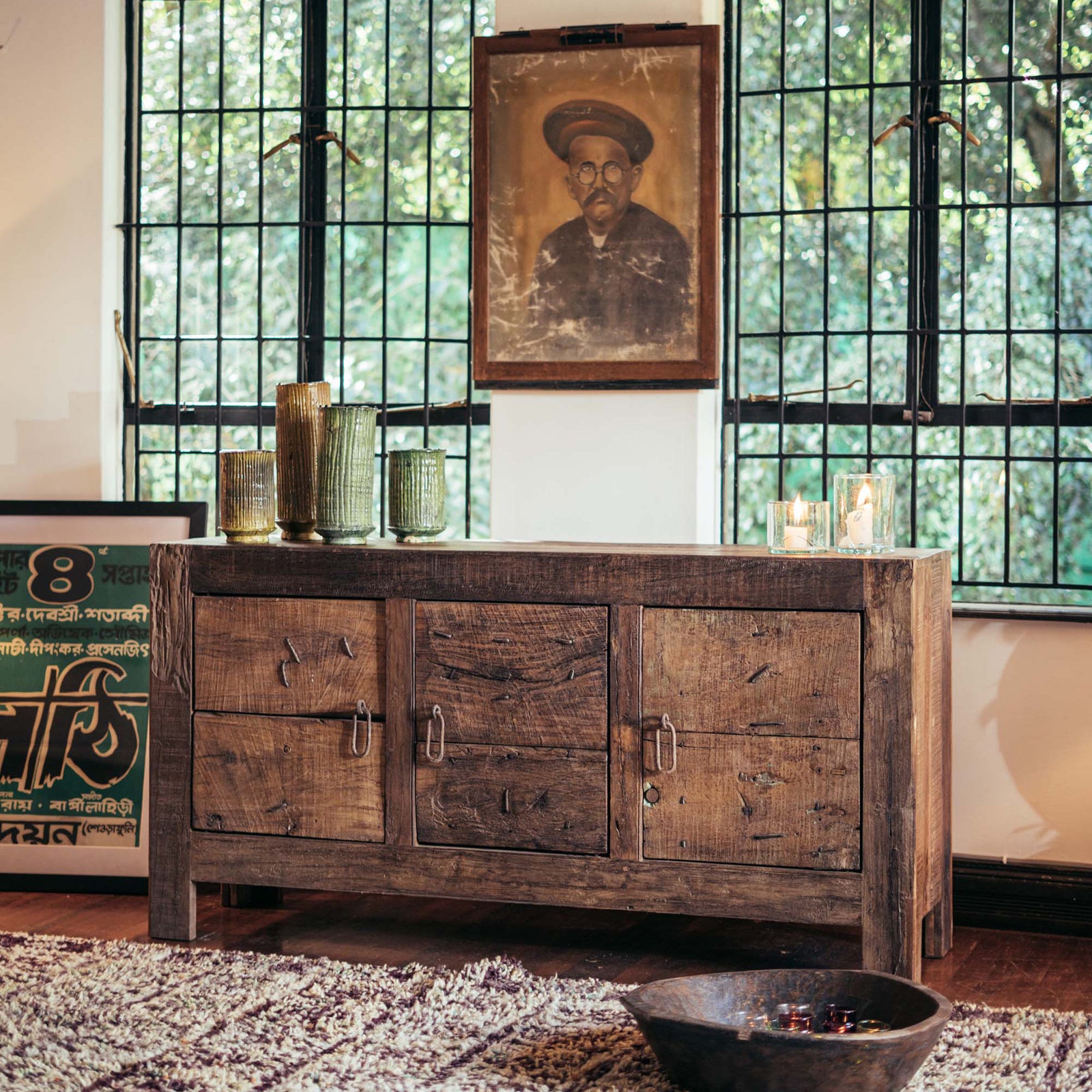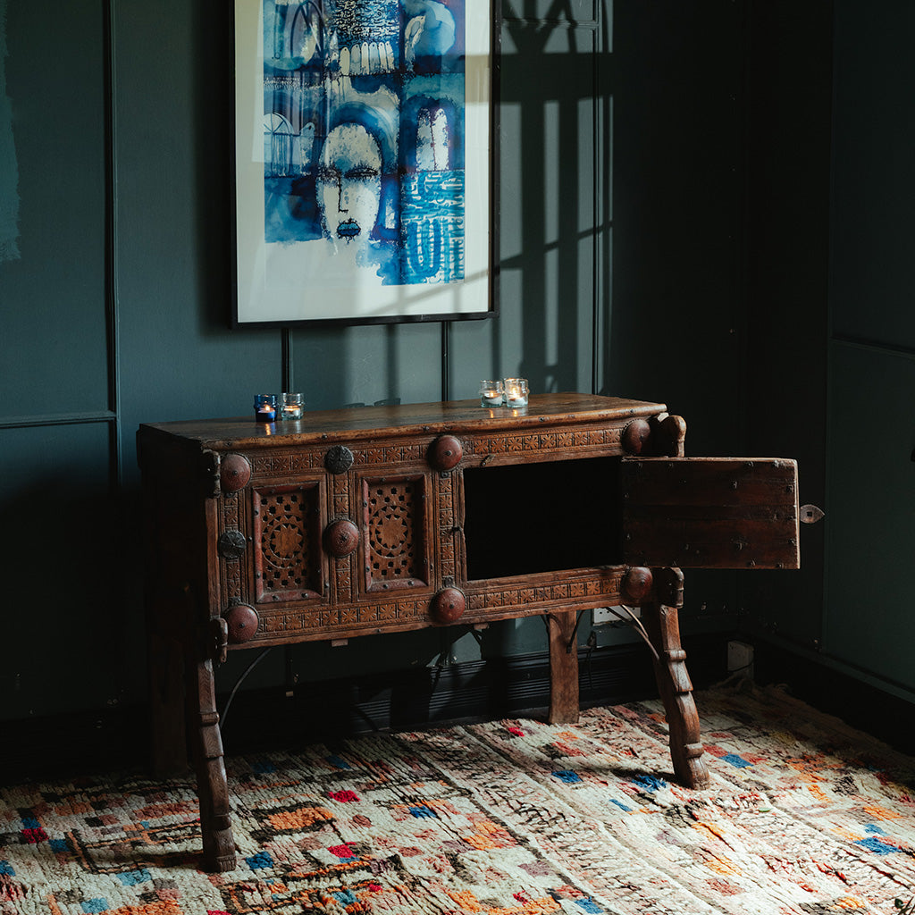 From old Almirah cabinets reflecting their long stories in layers of cracked paint to fabulous mirrors created with door and window frames that once graced ancient havelis.