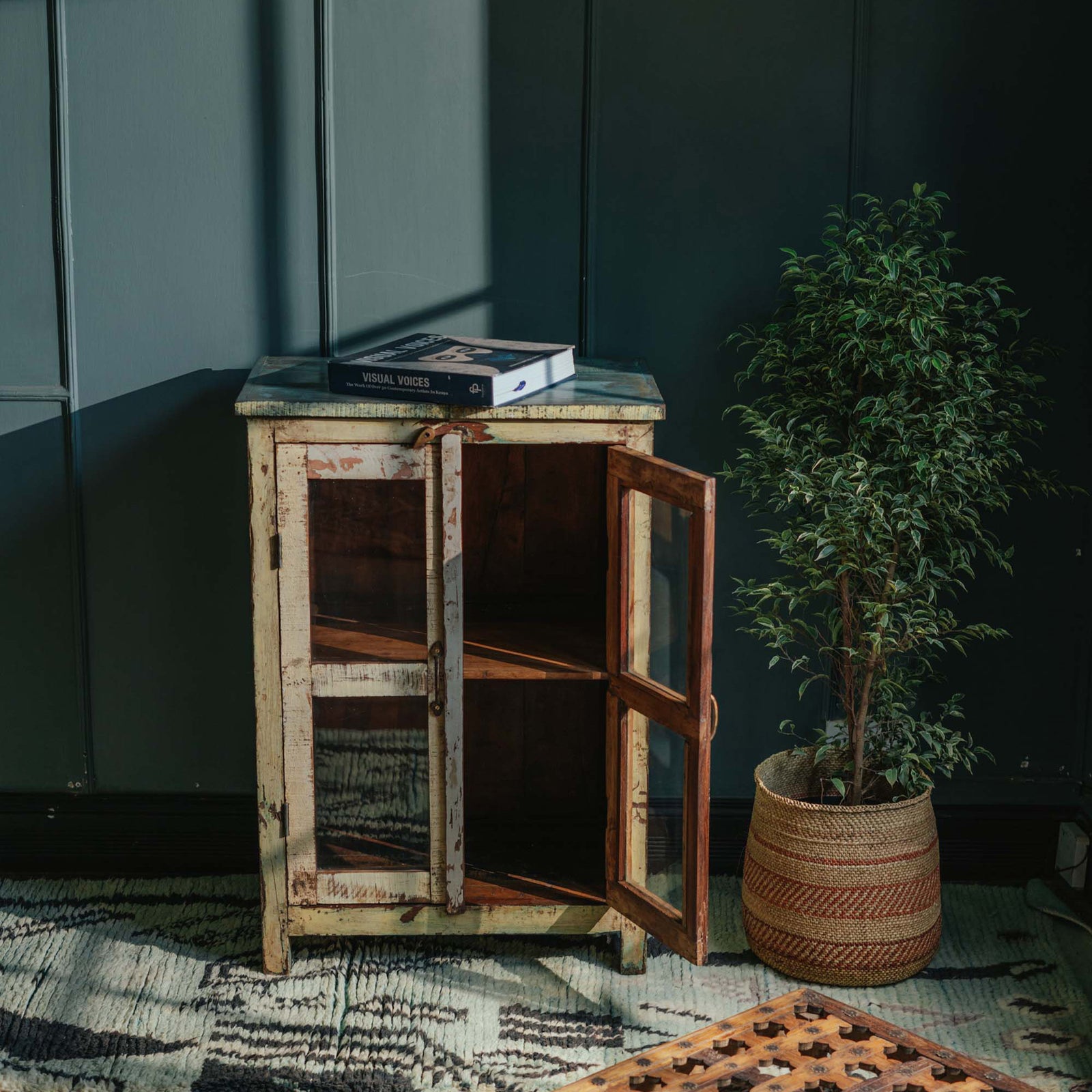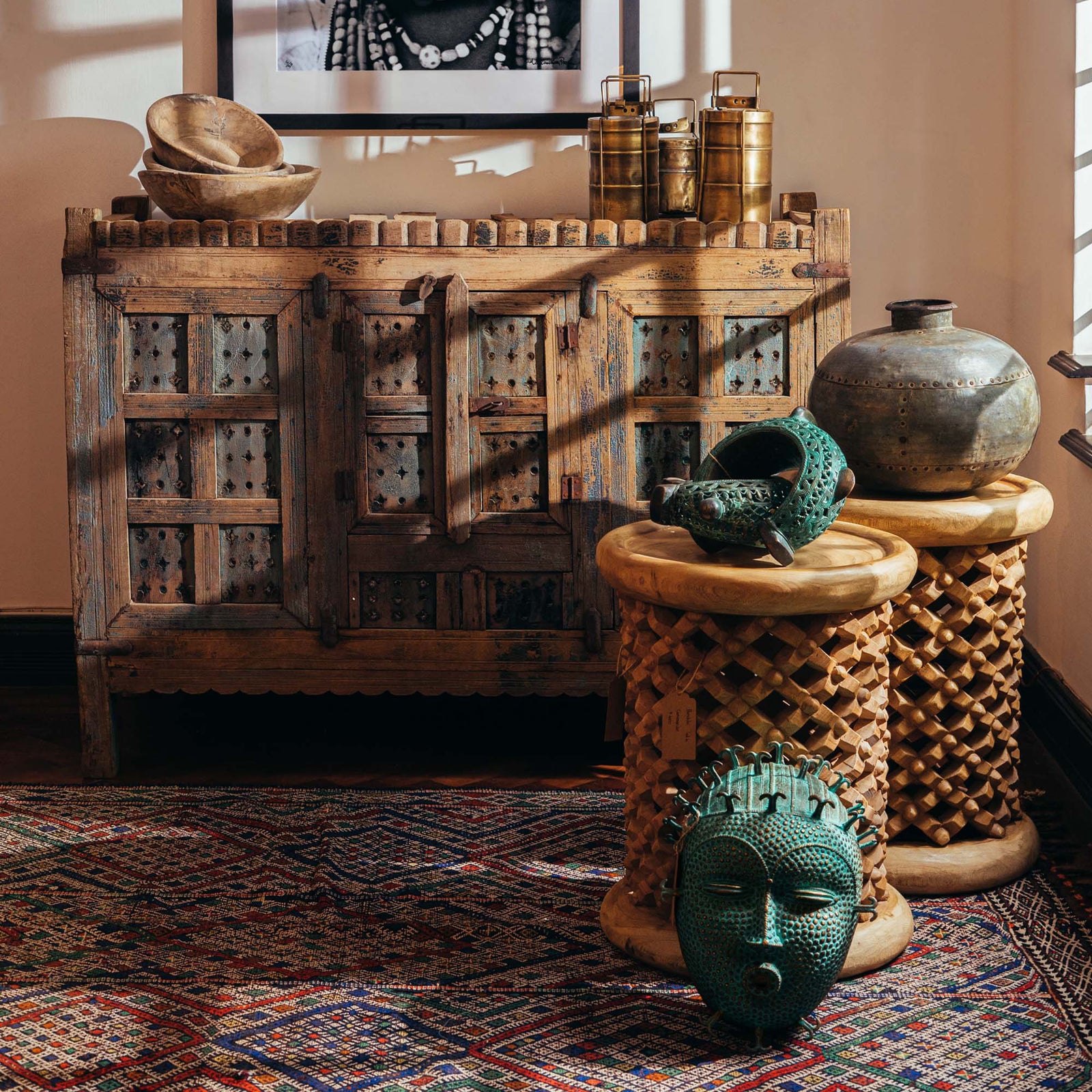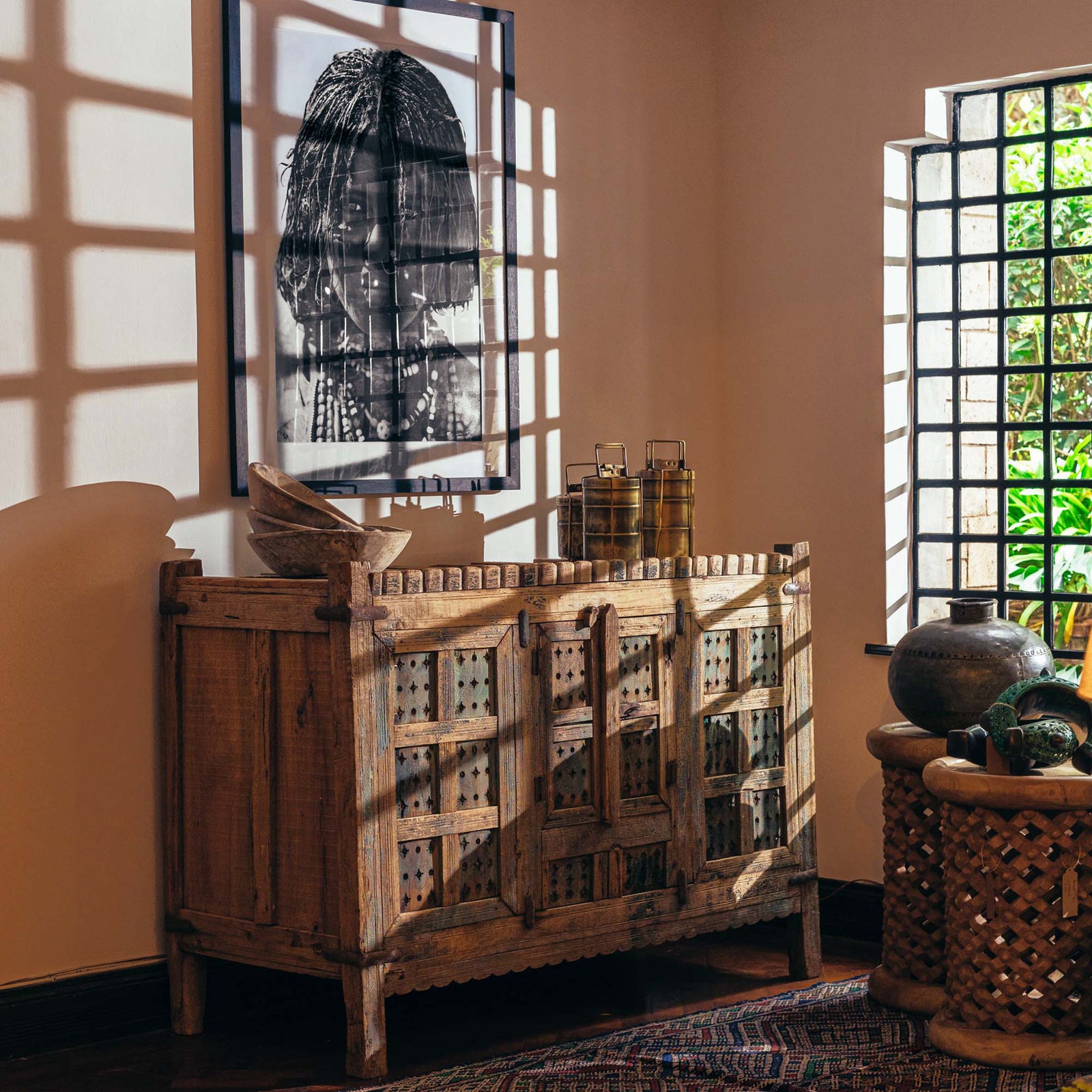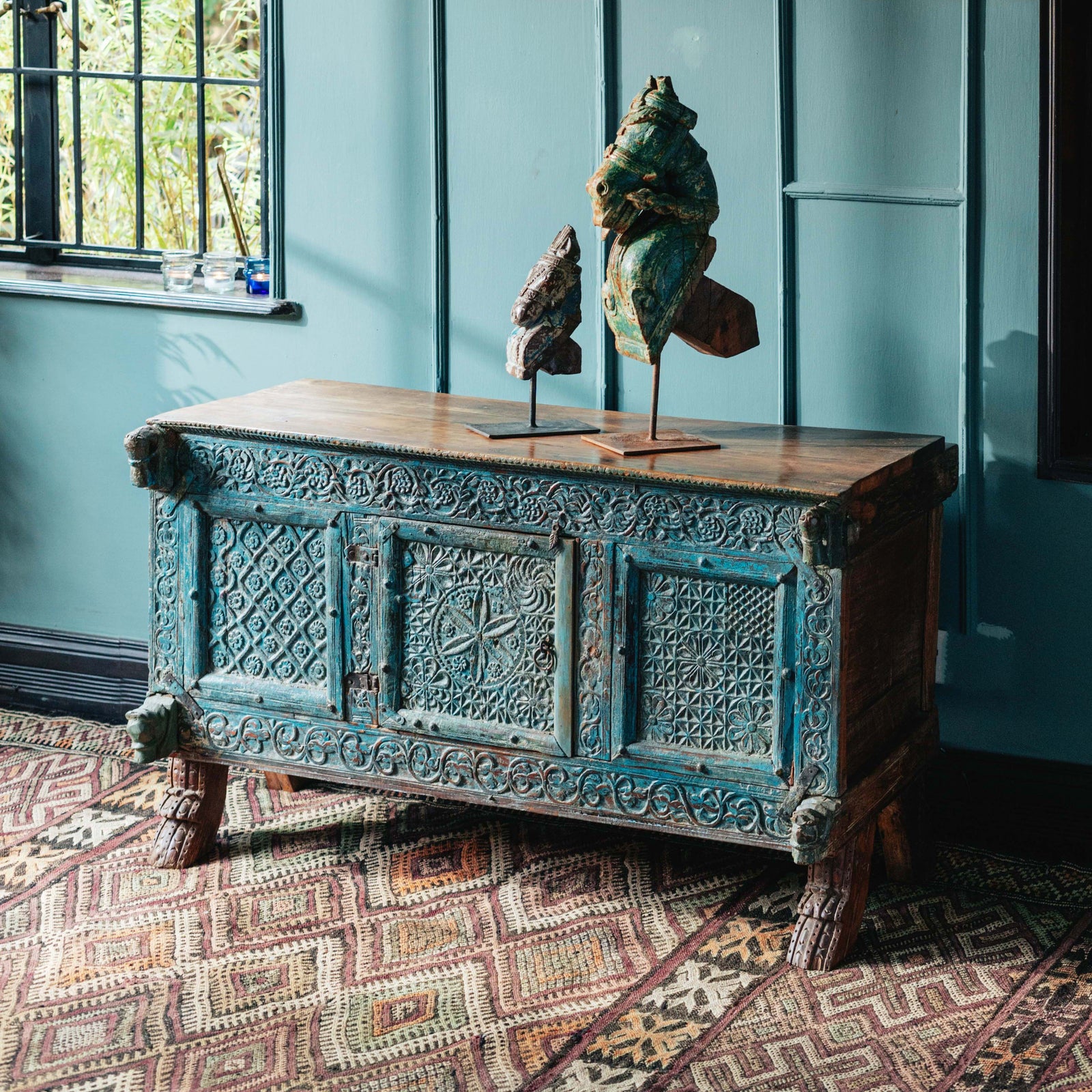 From old Almirah cabinets reflecting their long stories in layers of cracked paint to fabulous mirrors created with door and window frames that once graced ancient havelis.